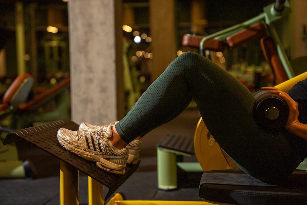If you have access to a hip thrust machine, you should first adjust the seat position correctly: The back pad should be at shoulder blade height, and the feet should be hip- to shoulder-width apart on the platform. Common mistakes include an overly arched back at the highest point of the movement and knees that collapse inward. Both should be avoided.