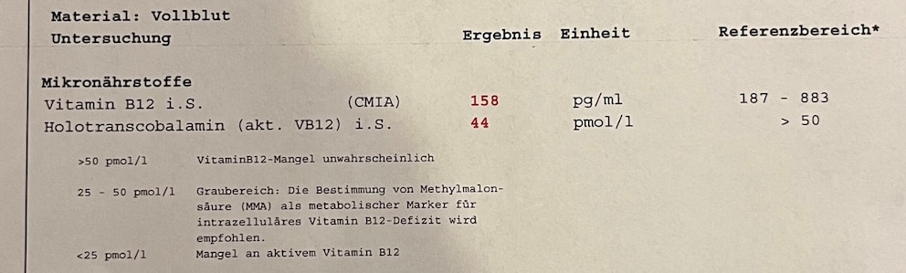 What I continue to find problematic is that the tests provide numbers but no medical interpretation or individual therapy recommendation. As mentioned before, the phone call for the blood test is voluntary, while at the doctor’s, I receive mandatory advice. Especially with critical nutrients like vitamin B12, this can lead to false security—or uncontrolled self-medication.