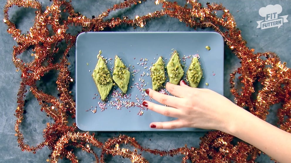Matcha tea, originating from Japan, not only has a unique flavor that works well in desserts and sweet snacks but also contains a lot of antioxidants. These are important for protecting our cells from free radicals. That’s reason enough to include matcha in our FITfuttern recipe of the week, along with another tried-and-true superfood: pistachios. They match in color, are also antioxidant powerhouses, and are full of valuable polyunsaturated fatty acids known to help prevent cardiovascular diseases. They also provide fiber and even vitamin D. Our Matcha Pistachio Diamonds are the perfect healthy cookies for the holiday season–and of course, for before and after.