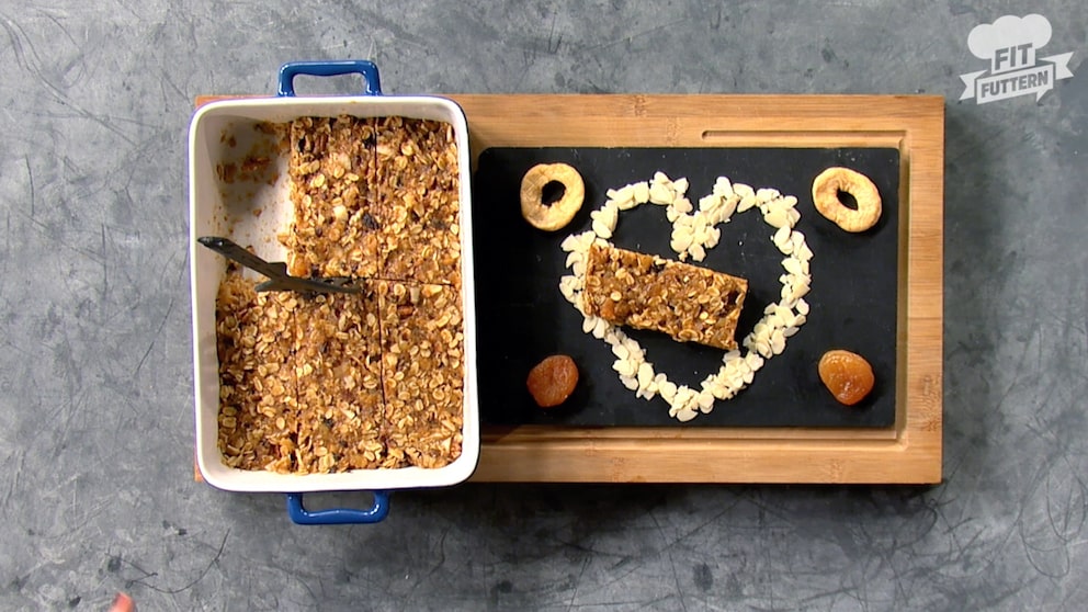 FITfuttern regularly presents a recipe to try that must be three things: simple, tasty, and healthy—just like our granola bars. The base is oatmeal, known to be real nutrient bombs, bringing important amino acids, B vitamins, and vitamin E to the bowl—or rather, to the granola bar. Briefly roasted in the oven, they become an extra-crispy treat that can also help a sluggish digestive tract get moving again.